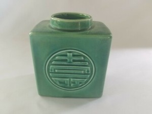 Vintage grüne Keramik Teedose Dose signiert ohne Deckel