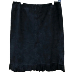 Vintage VS2 VAKKO Y2K 90er Bleistiftrock mit Rüschensaum SCHWARZ ZIEGENVELOURSLEDER Gr. 6