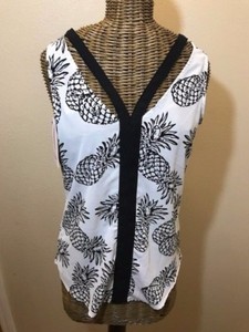 CANDIES - SCHWARZ WEISSE ÄRMELLOSE ANANAS BLUSE - XS