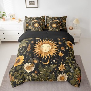 7Pcs Sun and Moon Comforter Sets Twin Size, Butterfly Moth Flower Rustic Gard...