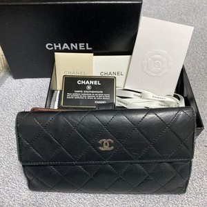 Authentische Chanel Matelasse lange Geldbörse schwarz Lammleder Leder mit CoCo Marke