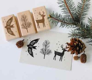Stempel Winter groß, Stempel Taube Rentier Hirsch Tannenzweig, Stempel Scandi