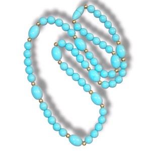 Vintage Türkis Blau Acryl Perlen Halskette 24"