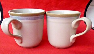 Noritake Becher Tasse Steinzeug Backofen Save Beige braun Borte Kaffee Tee Japan 2er Set