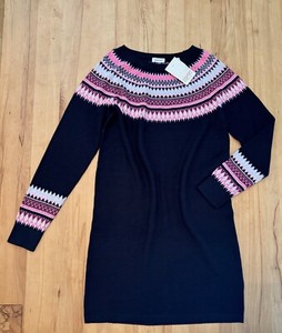 Neu Esprit Baumwolle Norweger Strick Kleid Gr. S,36-38 Dunkelblau Mit Muster