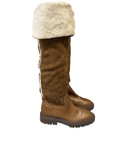 Zara Overknee Leder Wildleder Stiefel 39 8 Braun
