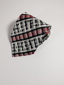Angelino handgefertigte Herrenkrawatte Seide weiß, rot und schwarz geometrisch gebraucht, in einwandfreiem Zustand