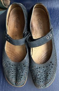 Gabor Gr. 9 Mary Jane Punched Leather Suede Comfort Schuhe blau Klett UK 7