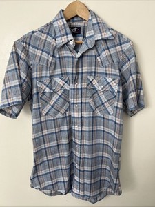 Vintage 70er Jahre Levi Perlmutt Druckknopf Damen M Western Hemd metallic kariert