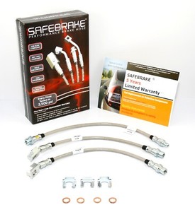 SAFEBRAKE ist ein Ersatzbremsschläuche Kit, der alle Original Gummi Bremsschläuche Ihres Autos ersetzt. SAFEBRAKE kann einen großen Unterschied für die Bremsleistung Ihres Autos machen. (Siehe die Kundenbewertungen unserer Ebay).