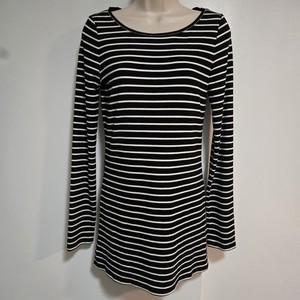 White House Black Market Small schwarz weiß gerippt Langarm Tunika Top