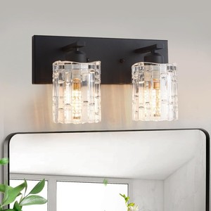Mattschwarze Kristall Badezimmer Waschtischleuchte, 2 Leuchten Moderne Badezimmer Wandleuchte... EUR 69,56