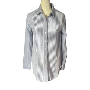 Lands' End schwarz-weiß gestreifte Langarm Button Down Boyfriend Tunika XS