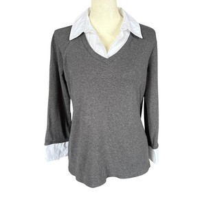 Karen Scott grauer 3/4 Arm Pullover mit weißem Hemdkragen Gr. Small