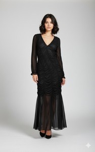 ZARA TRANSPARENTES SCHWARZES KLEID MIT V-AUSSCHNITT GRÖSSE MEDIUM