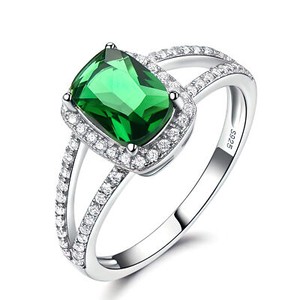 2.4 CT Cushion Green Lab Created Nano Emerald Halo Ring White 925 Silver