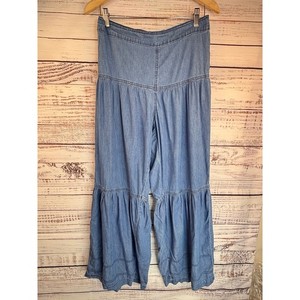 Sincerely Jules Chambray Ultra Wide Leg Rüschensaum Hose L Stufen Boho Festival