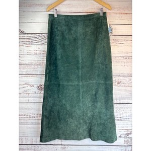 Vintage Deadstock 90er Wildleder langer Rock 14 sattes Waldgrün Boho erdig Neu mit Etikett