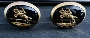 Vintage Equestrian Cufflinks Intaglio Reverse Hunter Jumper Horse Gold Black