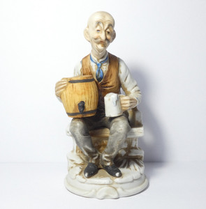 Vintage alter Mann/w Bierfass Fass & Steinkrug 6,25" groß Keramikfigur