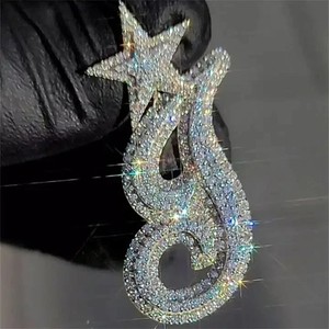 Echt Moissanit 2" Herren Anfangsbuchstabe A Herren Anhänger 925 Sterling Silber