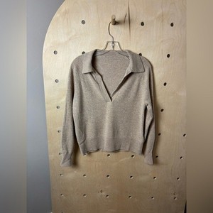 J.CREW 100% Kaschmir Kragen V-Ausschnitt Polo Pullover HEATHER STONE AZ241 S?