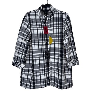 Ali Miles Art To Wear Button Down Karo Crinkle Tunika Top Schwarz Weiß Gr. M