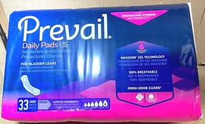 Prevail Daily Pads 33 Count Ultimate Absorbencty "6" Bladder Leaks Regular