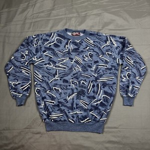 Vintage 90s All Over Print Crewneck Sweatshirt Medium Blue Geometric Unisex Vintage