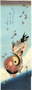 Hiroshige, Vögel & Botaniker. Mandarinenenten auf eisigem Teich, asiatischer Stil 1988 Druck EUR 14,58