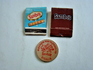 Sambo's Restaurant (2) Gebrauchte Streichholzbücher & Holz Kostenlose Kaffeemarke Visalia CA