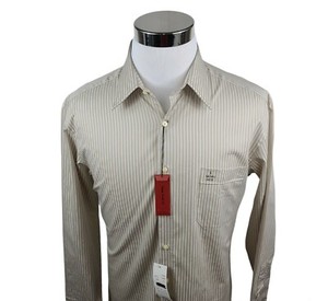 Billy London langärmliges Slim Fit Herrenhemd Größe Large cremefarbene Streifen neu mit Etikett EUR 17,15
