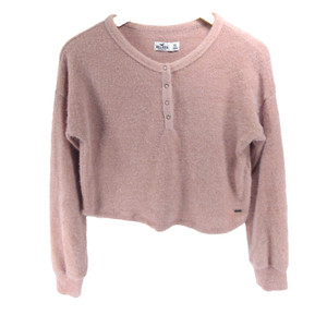 Neu Hollister Cropped-Pullover Damen Rosa XS Langarm 1/2 Knopfleiste