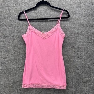 Y2K Trägertop groß rosa Spitzenbesatz Spaghettiträger Baumwolle verstellbar adrett Urban