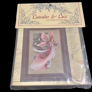 Lavendel & Spitze Kreuzstich viktorianische Designs in den Armen eines Engels Neu in Verpackung EUR 7,73