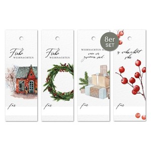 NORDEULE® 8 Geschenkanhänger Weihnachten Mix-Set | 8 STÜCK Aquarellmotiv Lochung