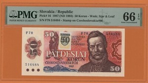 SLOWAKEI 50 KORUN 1987 ( 1993 ) PICK # 16 PMG 66 GEM UNCIRCULATED EPQ.