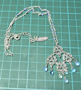 Vintage Stamped Nygard Silver Tone Blue Beaded Pendant Necklace Fashion Costume