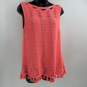 Lilly Pulitzer Neon Koralle Rosa Ärmellos Häkel Strick Tank Bluse Large