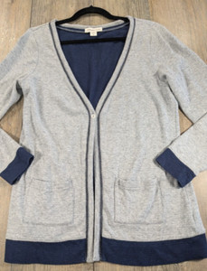 Coldwater Creek Strickjacke Pullover Damen klein grau blau Langarm Taschen