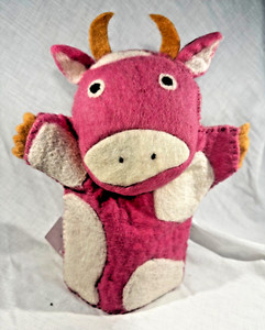 NEU 100% Wolle Handpuppe - handgefertigt in Nepal - gefilzte rosa gepunktete Kuh - 2010