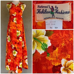 🌺 Hukilau Vintage Hawaiian Barkcloth Muumuu Dress size S/M 🌺