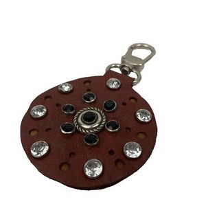 Handmade Leather Rhinestone Keyring 6cm Key Ring Key Chain Jewelled Czech Artist