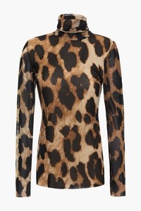 Ganni Top Women’s Large 42 Leopard Print Mesh Turtleneck Sheer Back