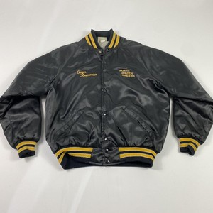 Vintage North Golden Raiders Coach Jacke Herren Schwarz Satin Gesteppt Druckknopf USA 90s