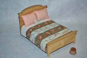 Miniatur Puppenhaus Tagesdecke ECHT STEPPDECKE MIT 3 Kissen Handarbeit Maßstab 1:12 Ausbreitung EUR 30,24