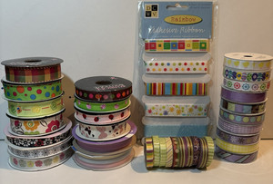 Lot of 38 Assorted Ribbons-Spring, Easter, Floral-Mix of Used and Sealed w spool