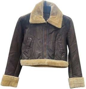 Women Bomber Short Jacket Real Leather Faux Fur Lining Fashion Zip Crop Jacket