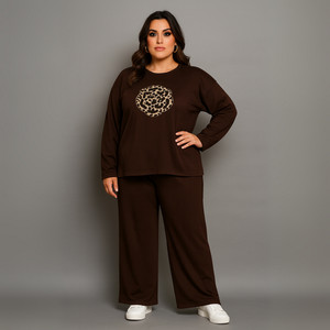 ROCKTHOSECURVES DAMEN Trainingsanzug Set Leopardenmotiv weites Bein