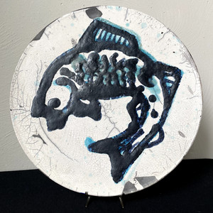 Signierte Joyce Furney Raku Keramik Fußschale Kranich Schimmer Sonnenuntergang Kunstkeramik EUR 42,17